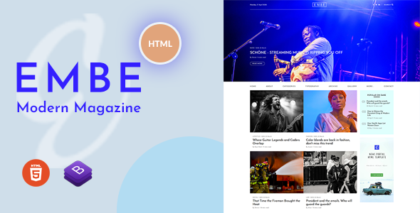 EmBe is 100% responsive and cross-browser compatible, retina screen friendly and based on Bootstrap Framework. Your page will easily stand the test of time, always looking refreshing and delivering outstanding performance. Get the word out with EmBe and enter the online world with a banging new blog or news site.